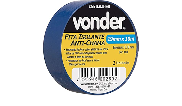 FITA ISOLANTE AZUL 10MTS X 19MM VONDER