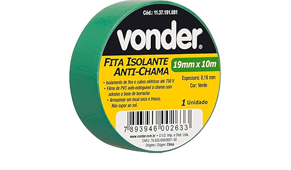 FITA ISOLANTE VERDE 10MTS X 19MM VONDER