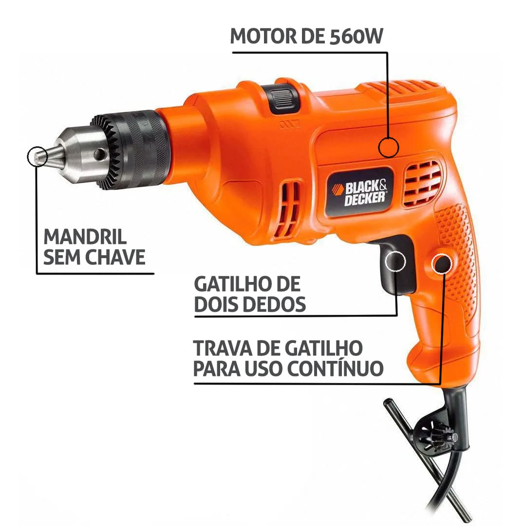 FURADEIRA IMPACTO 3/8″ 560Wts Black+Decker 127V