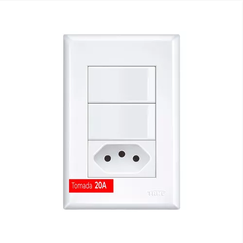 INTERRUPTOR 02 SIMPLES + 01 TOMADA 2X4 20A BRANCO FAME EVIDENCE