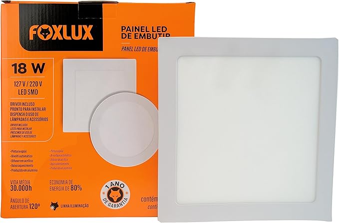 LUMINARIA LED QUADRADA EMBUTIR 18W 6500K FOXLUX