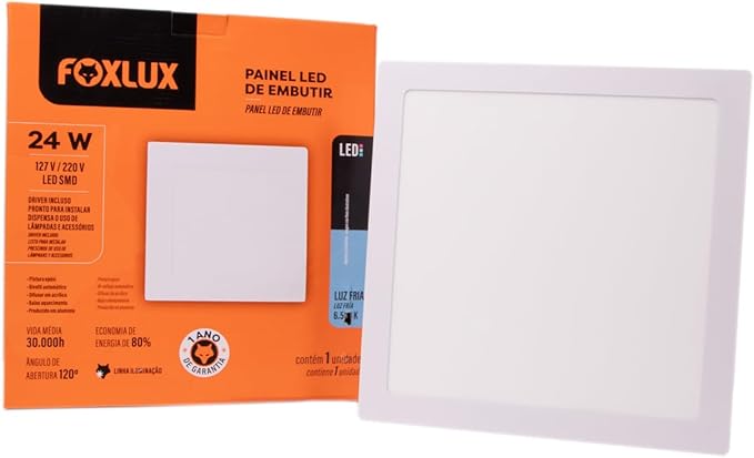 LUMINARIA LED QUADRADA EMBUTIR 24W 6500K FOXLUX
