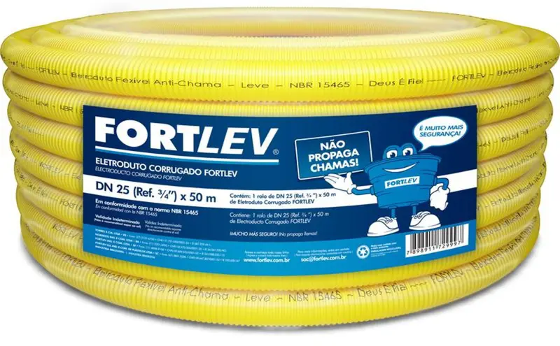 MANGUEIRA CORRUGADA ( CANDUITE ) AMARELO FORTLEV 3/4 “ 50 Mts