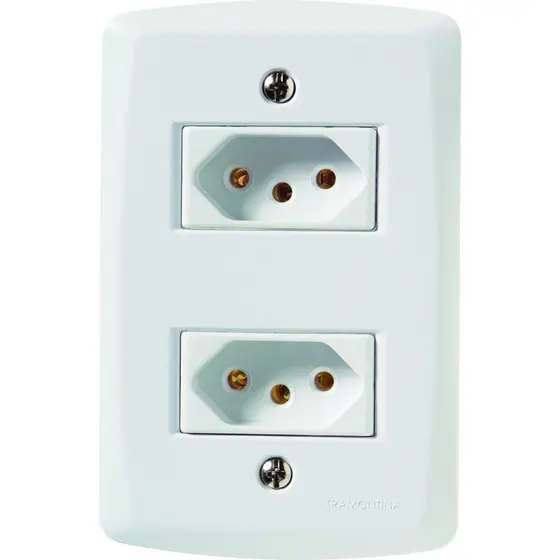 TOMADA DUPLA 2X4 C/PLACA 10A BRANCA TRAMONTINA LUX