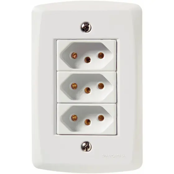 TOMADA TRIPLA 2X4 C/PLACA 10A BRANCA TRAMONTINA LUX
